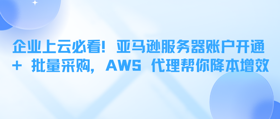 企业上云必看!亚马逊服务器账户开通 + 批量采购,AWS 代理帮你降本增效